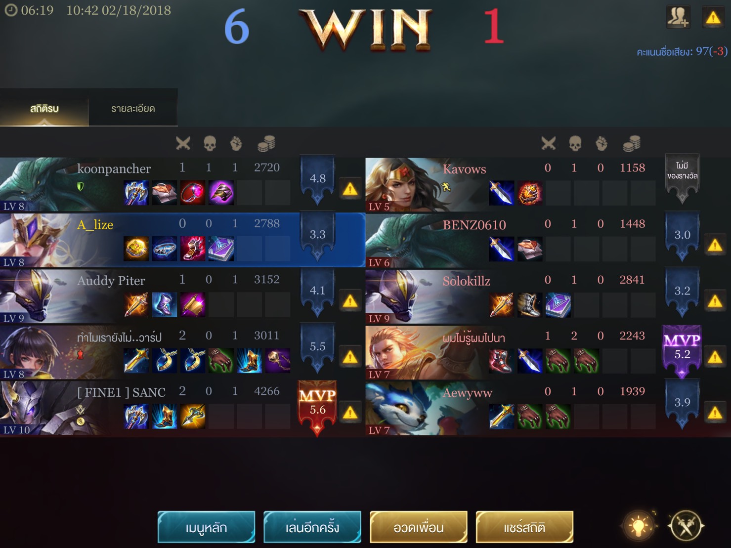 เล่น rov แบกแทบทุกตา MVP แพ้ติดกัน20+ แล้ว