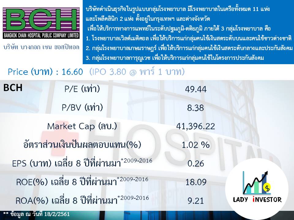 หุ้นกลุ่มโรงพยาบาลทุกตัวในตลาด แถมข้อมูลจาก Fact sheet และ ลักษณะธุรกิจ 18/02/2561
