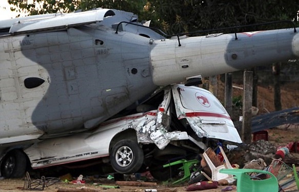 สุดมึน!!! Helicopter Black Hawk เม็กซิโก ตก!!! คนบนพื้น ตาย 13 ศพ!!! เจ็บ 15 ราย!!! รถตู้พัง 2 คัน!!! แต่ รมว.มหาดไทย รอด!!!