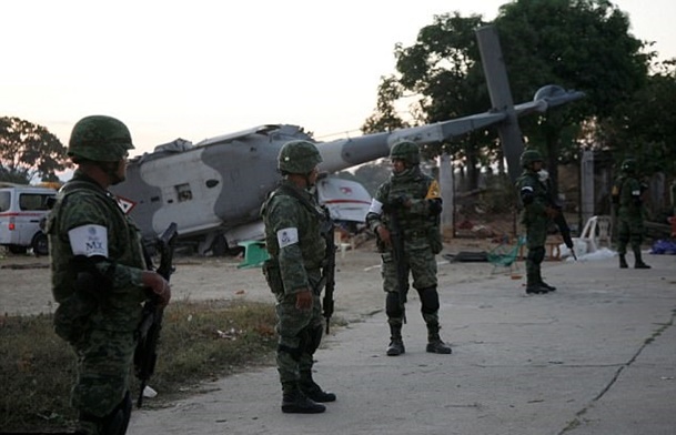 ซึ่งทางกองทัพเม็กซิโกชี้แจงว่า ฮ.แบล็กฮอว์กกำลังจะขอร่อนลงจอดฉุกเฉินในพื้นที่เปิดโล่งในเวลานั้น และมีรายงานว่ามีรถตู้ 2 คันที่จอดในบริเวณถูกฮ.ลำนี้ตกใส่