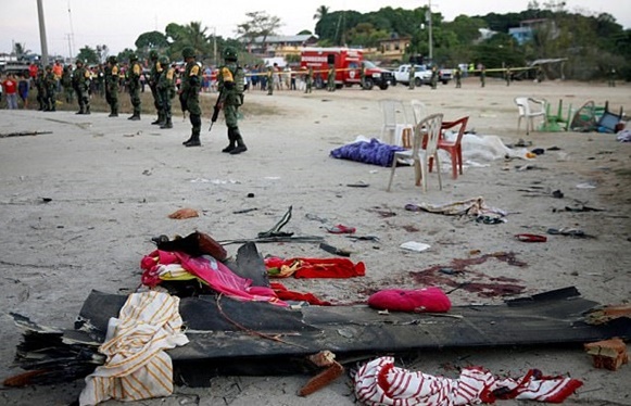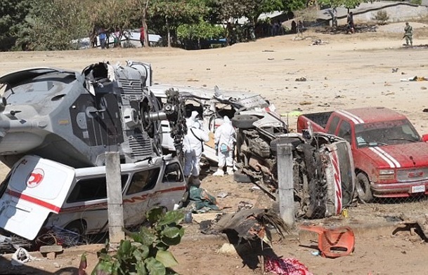 เอเอฟพี/เอเจนซีส์ – เกิดเหตุเฮลิคอปเตอร์ UH-60 แบล็กฮอว์กของกองทัพเม็กซิโกที่ขนรัฐมนตรีมหาดไทยแดนจังโก้ รวมผู้ว่าการัฐวาฮากาเกิดตกในรัฐทางใต้ของประเทศ เสียชีวิต 13 ราย บาดเจ็บ 15 ราย แต่ตัวรัฐมนตรีและผู้ว่าการรัฐวาฮากาบนฮ.ไม่ได้รับบาดเจ็บ เกิดขึ้นในขณะที่ฮ.กำลังบินเข้าใกล้ศูนย์กลางแผ่นดินไหวระดับ 7.2 ที่เกิดในคืนวันศุกร์(16 ก.พ)เมืองซานเตียโก ยามิลเตเปค( Santiago Jamiltepec) รัฐวาฮากา( Oaxaca)
