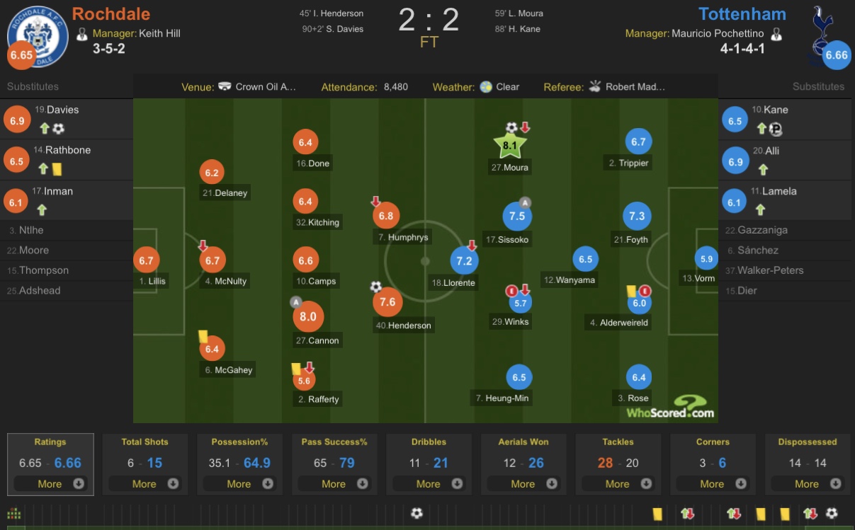 2-2 สกอร์ยุติธรรมสำหรับฟอร์มของโรชเดล เมื่อคืน เล่นซะกระโชกโฮกฮาก ดิบดีจริงๆ วิ่งสู้ฟัดมากๆ