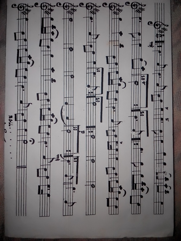 จากรูป พอดีวันนี้จขกท.ไปรับหลานที่โรงเรียนค่ะ แล้วขณะที่นั่งรอ ได้เจอเด็กนักเรียนมาซ้อมดนตรีใกล้ๆ แล้วเห็นว่า เป็นเพลงที่เพราะดี เราเองเคยเรียนชมรมดนตรีไทยสมัยเด็กๆ เลยคิดอยากจะลองเล่นเพลงนี้ดู ซึ่งน้องเค้าก็ใจดีค่ะ เค้าเอาโน๊ตยืนให้มา แล้วเห็นเค้าบอกว่าเดี๋ยวเค้าจะไปถ่ายเอกสารใหม่ได้ เราเลยได้มาค่ะ แล้วพอกลับมาถึงบ้าน จากนั้นนึกได้ว่าลืมถามชื่อเพลง และโน๊ตแบบนี้เราอ่านไม่เป็นค่ะ ปกติจะอ่านโน๊ตแบบ ด_ _ _ ร_ ม_ อะไรประมาณนี้ค่ะ พอน้องเค้าให้โน๊ตมา เราเลยรับไว้ กะว่าจะเอามาตายเอาดาบหน้าเลย รบกวนผู้รู้เรื่องดนตรีหน่อยนะคะ