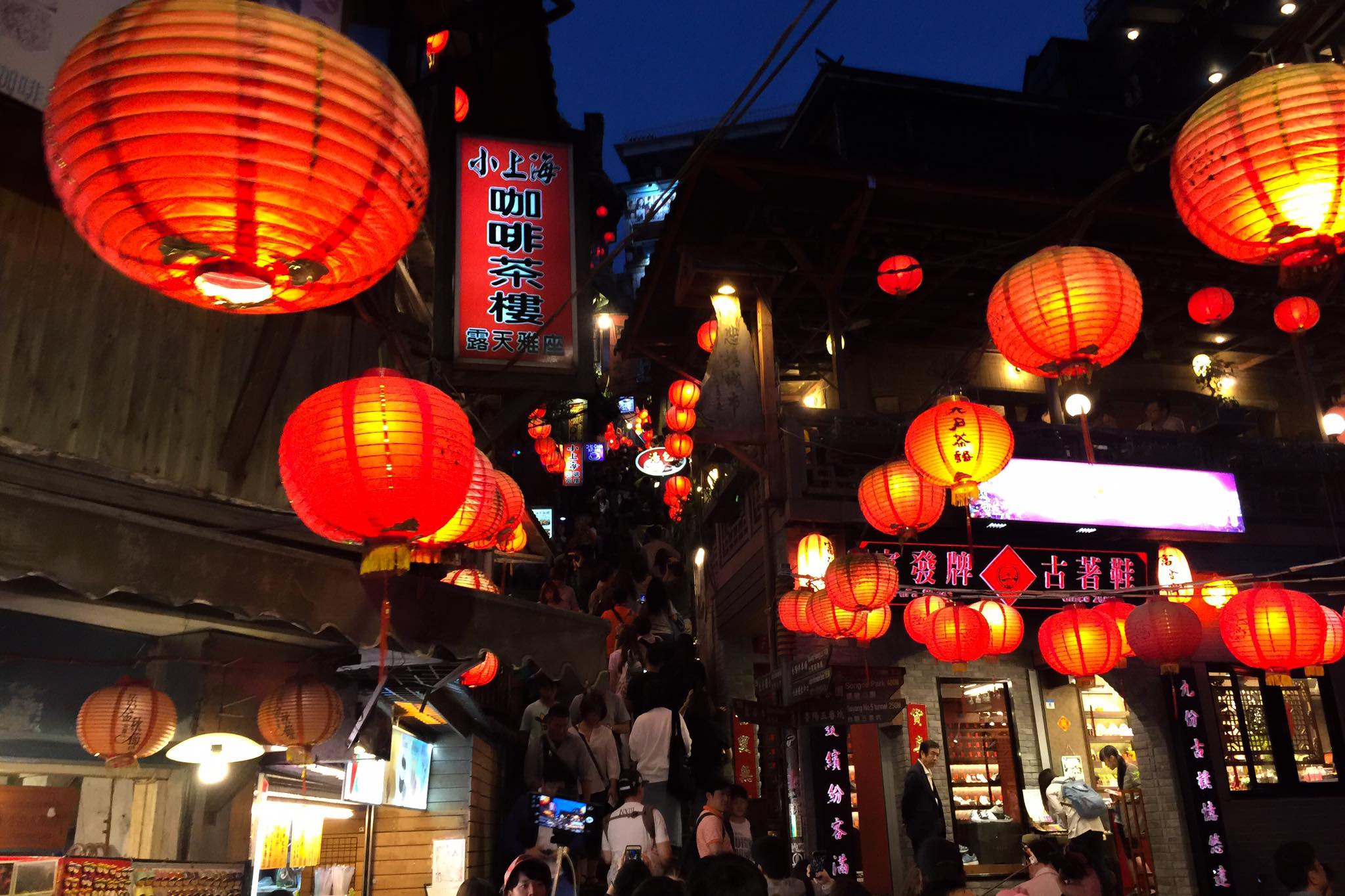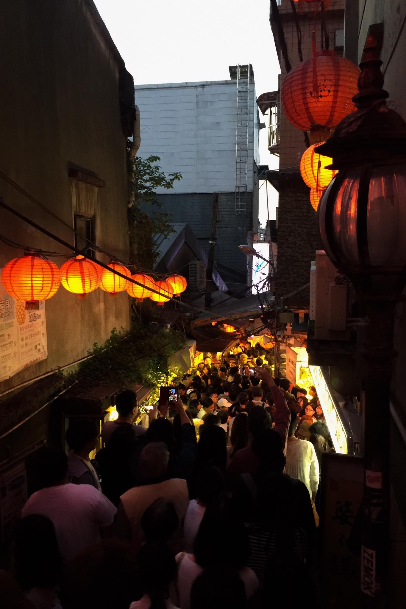 ถนน Jioufen เวลากลางคืน ร้านขายของสารพัดอย่างและคนเป็นล้าน