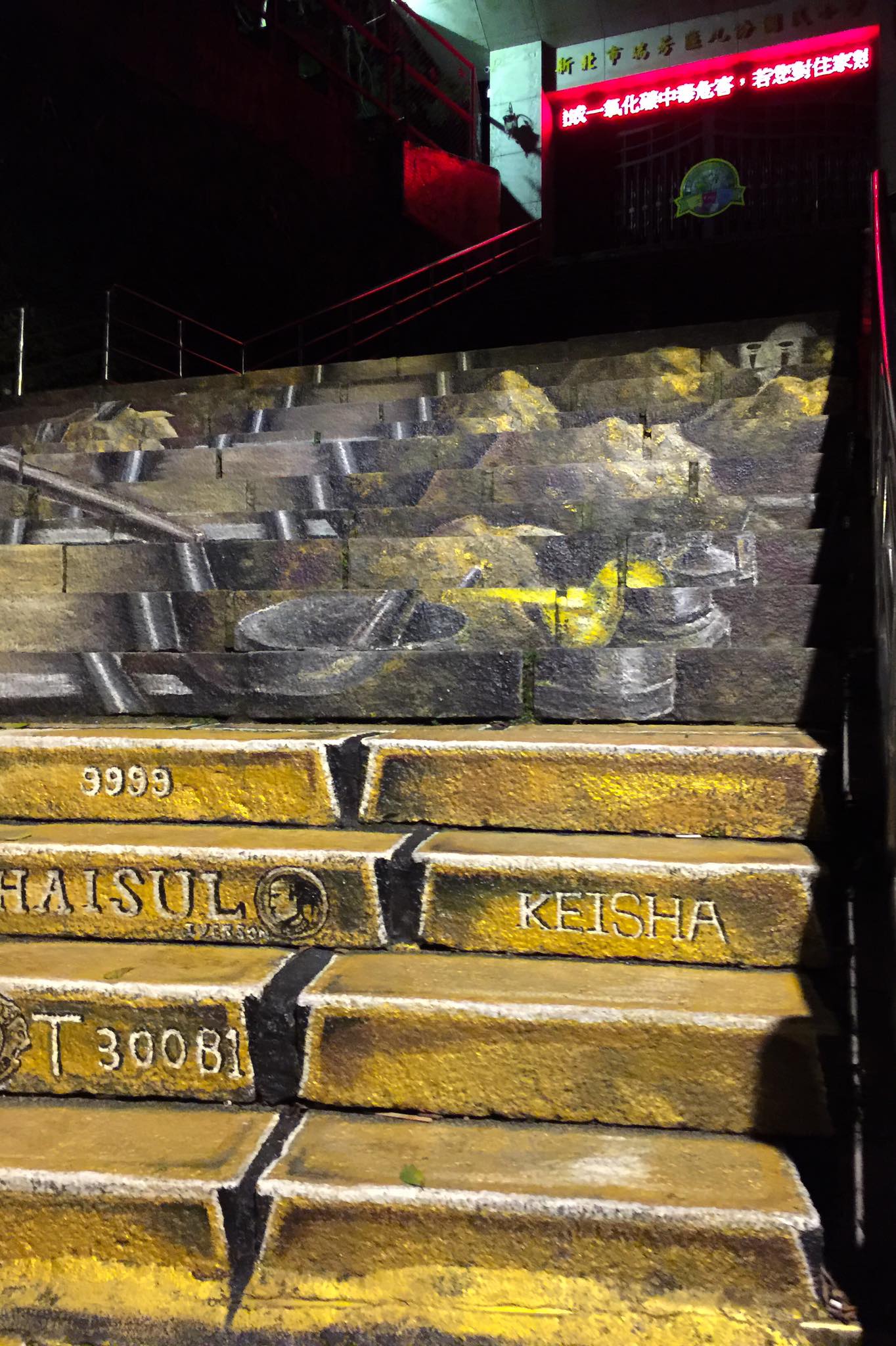 หลังจากฝ่าผู้คนบนถนนมาได้ก็มาเจอสุดทางสงบที่บันไดทองคำ -- จบทริป ไทเป 1 วันครับ