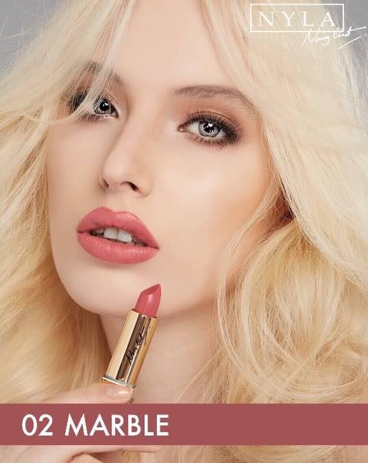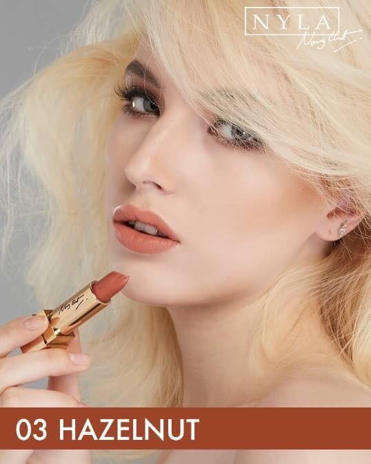 Nyla Lipstick 3 colors มีสารสกัดจากเยื่อไผ่ ที่ช่วยลดอาการอักเสบ ลดเลือนริ้วรอย เพิ่มความชุ่มชื้นเหมาะสำหรับผู้ริมฝีปากบอบบางแพ้ง่าย