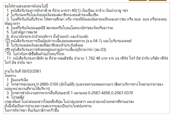 ขอภาษีคืนแค่ 7000 บาท แต่พอเห็นสรรพากรทวงให้ส่งหลักฐาน ก็อยากสละเงินภาษีส่วนที่ว่าเลยครับ