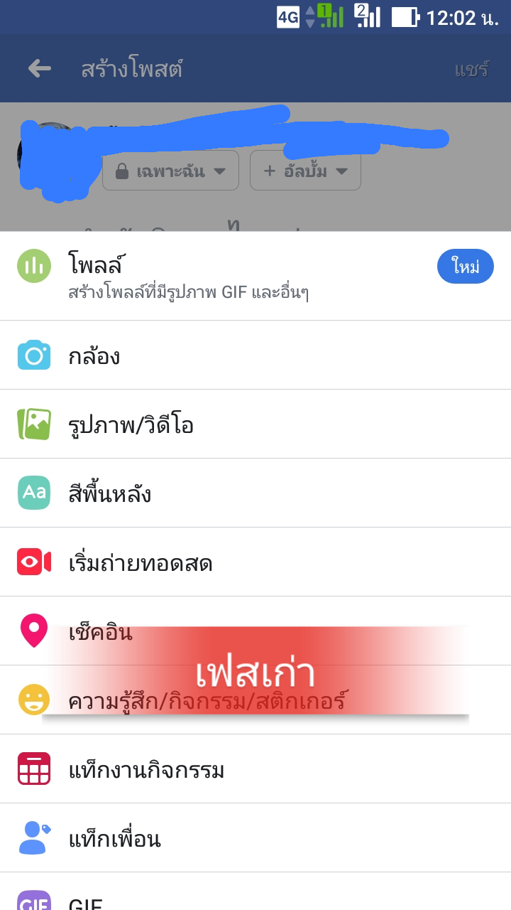 คือว่าผมสมัครเฟสใหม่ แต่ฟังชั่นในการใช้งานไม่มีให้เราเลือกใช้เหมือนเฟสเก่าเช่น เช็คอิน,ไลฟ์สด,การแสดงความรู้สึก ฯลฯ แต่ลองเข้าเฟสเก่าที่ไม่ใช้แล้ว