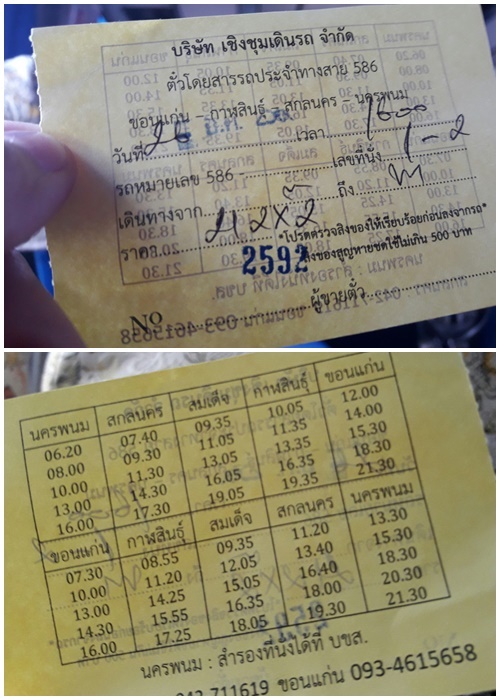 โดยขึ้นรถ นครพนม-ขอนแก่น รอบ 16:00 น. ถึงขอนแก่น 21:30 น. (ปกติต้องไปลงที่ บขส.3 แต่เขาจอดให้แค่ บขส.เก่า