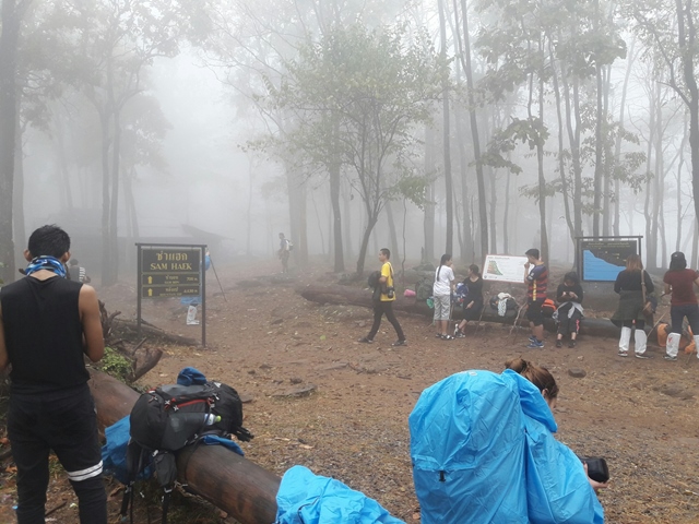 ถึงซำแรกประมาณ 10:00 น. ได้ แต่วิวสวยมากก คุ้มค่ากับความเหนื่อยเลยค่ะ หมอกหนาอย่างต่อเนื่อง ถ้าใครใสแว่นนี่แทบมองไม่เห็นทางเดิน ต้องได้เช็ดเลนส์ตลอด ลำบากกว่าไม่ใส่แว่นอีก