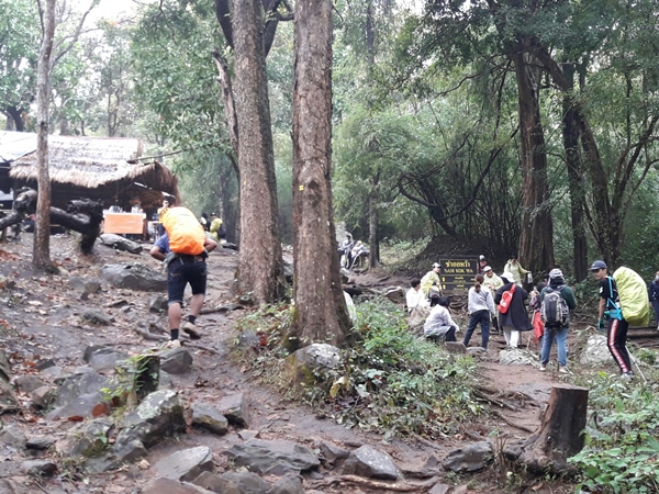 เมื่อเรียบร้อยทุกอย่างแล้วเราก็เดินไปยัง จุดที่ 4: จุดรับ-ส่ง สัมภาระ (สำหรับคนที่ประสงค์จะจ้างลูกหาบนะคะ ส่วนใครที่จะแบกกระเป๋าขึ้นไปเองก็เดินผ่านจุดนี้ได้เลยค่ะ^^)
