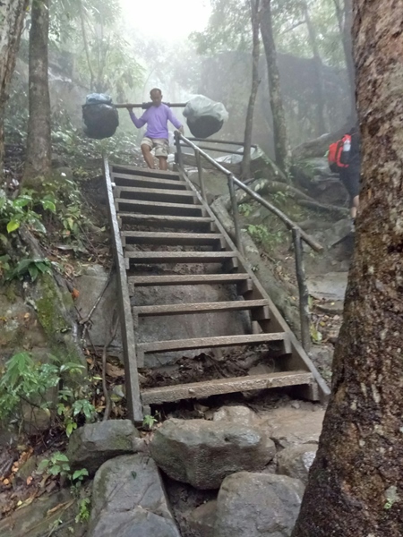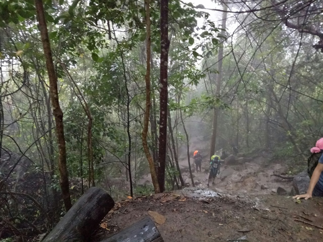 ลำพังแค่แบกเป้เล็กๆพร้อมเสบียงยังเหนื่อยเลยค่ะ ถ้าใครคิดว่าไม่ไหวก็ไม่ต้องฝืนนะคะ แล้วยิ่งช่วงที่เราไปนั้นฝนตกด้วย ทางเดินลื่น มีโคลนด้วย คนที่เดินตัวเปล่าก็แทบจะหกล้ม บางช่วงถึงกับต้องคลานไปก็มี เสื้อผ้านี่มีเลอะกันไปข้างนึงเลยแหละ ฮ่าา
