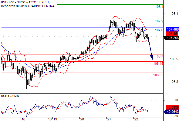 จุดที่ต้องการ: สถานะขายต่ำกว่า 107.60 เป้าหมายต่อไปที่ 106.70 และ 106.45