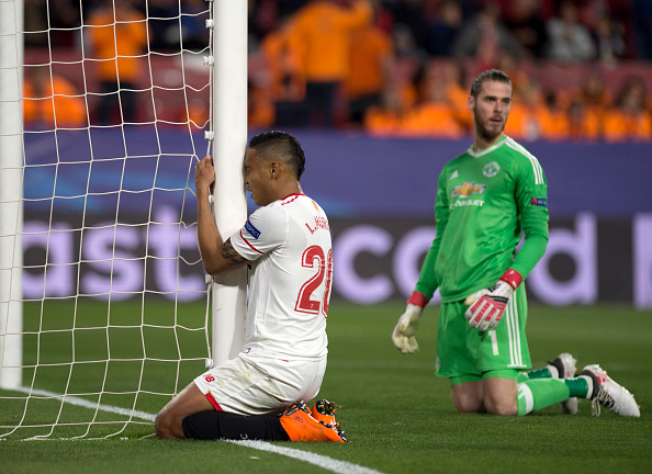 ดาบิด เด เคอา ผู้รักษาประตู แมนเชสเตอร์ ยูไนเต็ด เพิ่งทำสถิติเซฟไปถึง 8 ครั้งช่วยให้ "ปีศาจแดง" บุกไปเสมอ เซบีย่า 0-0 ในศึก ยูฟ่า แชมเปี้ยนส์ ลีก รอบ 16 ทีมสุดท้าย นัดแรก ที่สนาม รามอน ซานเชซ ปิซฆวน เมื่อวันพุธที่ 21 กุมภาพันธ์ ที่ผ่านมา