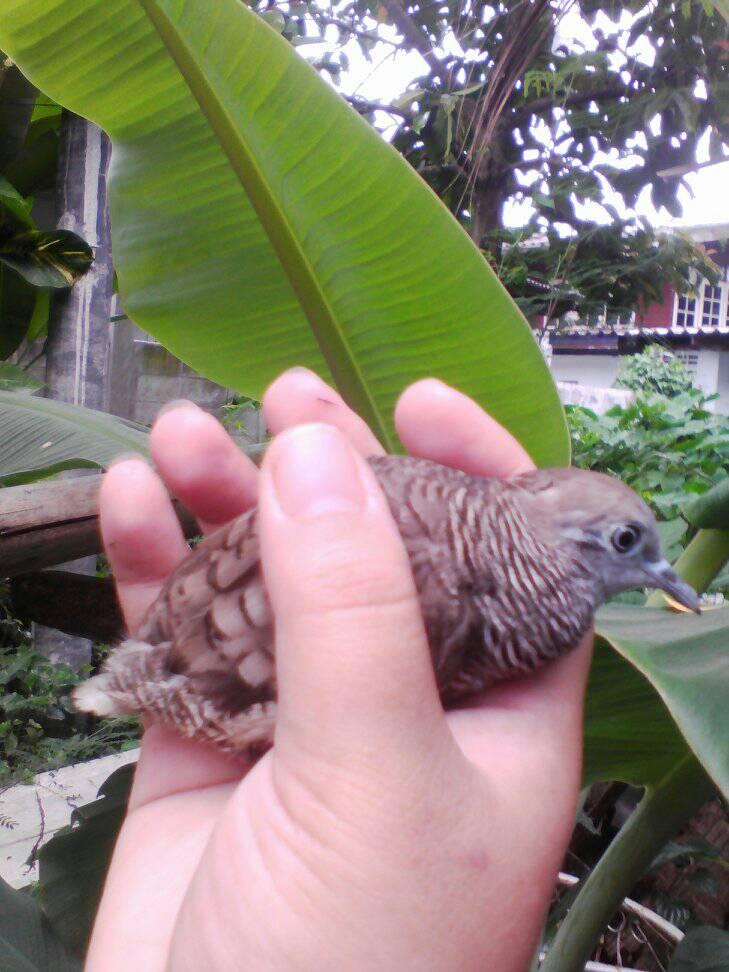 พอดีกลับเข้าบ้านแล้วเจอนกตัวนี้ เจ้าหมาที่บ้านกำลังเข้าไปดมๆ นกก้อไม่บิน เอาแต่กระเถิบๆตัวไป พอจับดูถึงได้รู้ว่าไม่มีหาง ไม่รู้ว่าเพิ่งกุดหรือตั้งแต่เกิด ต้องทำยังไงกับเค้าบ้างคะ ไม่มีความรู้เรื่องนกเลย เอาเค้าไปปล่อยในป่าที่ต้นไม่เยอะๆ ดีไหมคะ รบกวนช่วยตอบด้วยนะคะ