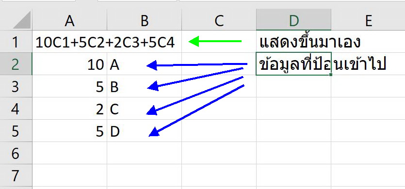 ถ้าจะป้อนข้อมูล เช่น 10A 5B 2C 5D .....