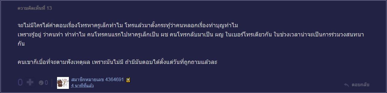 จริงๆเรื่องนี้มันง่ายมากเลยนะฮะ .. ไม่ได้โทรไปก็บอกว่าไม่ได้โทรไป แล้วก็อธิบายมาว่าการตั้งกระทู้ที่ครูเล็กบ่นนั้นมันเกี่ยวหรือไม่เกี่ยวกันยังไง