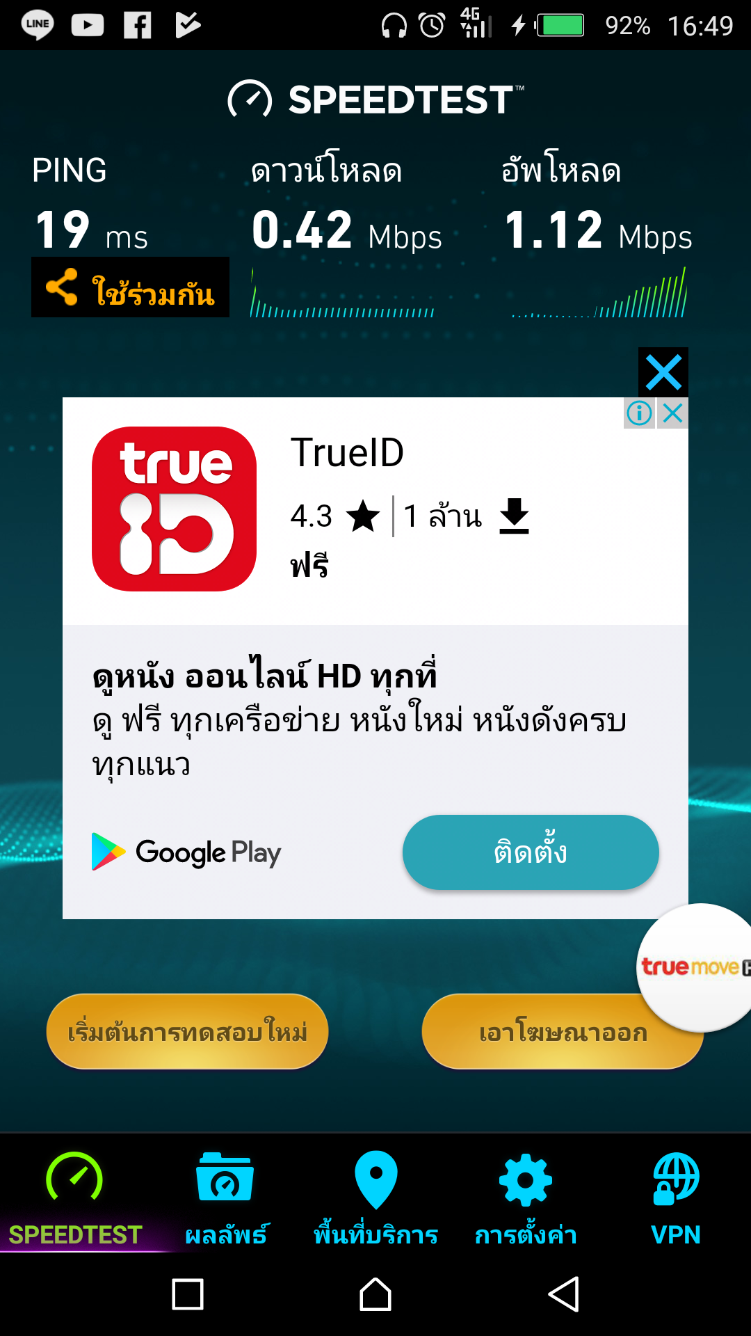 สมัครเน็ตtrue 6mb วิ่งไม่ถึง 1mb เลยครับ