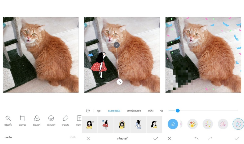 3.ฟังก์ชั่นแก้ไขรูปของเครื่อง ครบครันมากค่ะ เรียกว่าสำหรับใช้งานพื้นฐานไม่ต้องโหลดแอพเพิ่มยังได้ มีตั้งแต่ปรับพื้นฐาน ใส่ฟิลเตอร์ ใส่สติ๊กเกอร์ โมเสส จัดเรียงภาพในเฟรมเดียว ครบค่ะ ไม่ได้ไก่กาด้วยใช้ได้จริง ฟิลเตอร์สวยดีด้วยค่ะ ^^ เช่นเดียวกับฟังก์ชั่นแก้ไขคลิปวีดีโอของเครื่องค่ะ สามารถตัด ใส่ฟิลเตอร์ ใส่เสียงเพลง และ เครดิตในคลิป แบบไม่ต้องโหลดแอพเพิ่มค่ะ