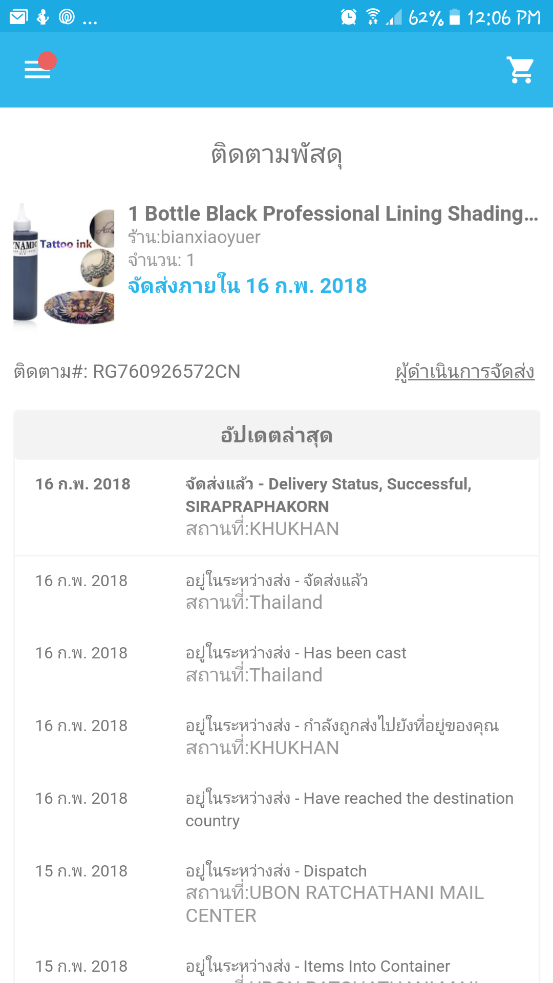 คือเราสั่งของชิ้นนึงไว้สักพักแล้ว ตอนแรกกำลังมาที่อำเภอที่เราอยู่ แต่อยู่ๆก็ไปเด้งจังหวัดอื่นซึ่งอยู่ห่างไปอีกหลายจังหวัด ทำให้แทนที่จะได้รับของในวันที่15-16 ตอ