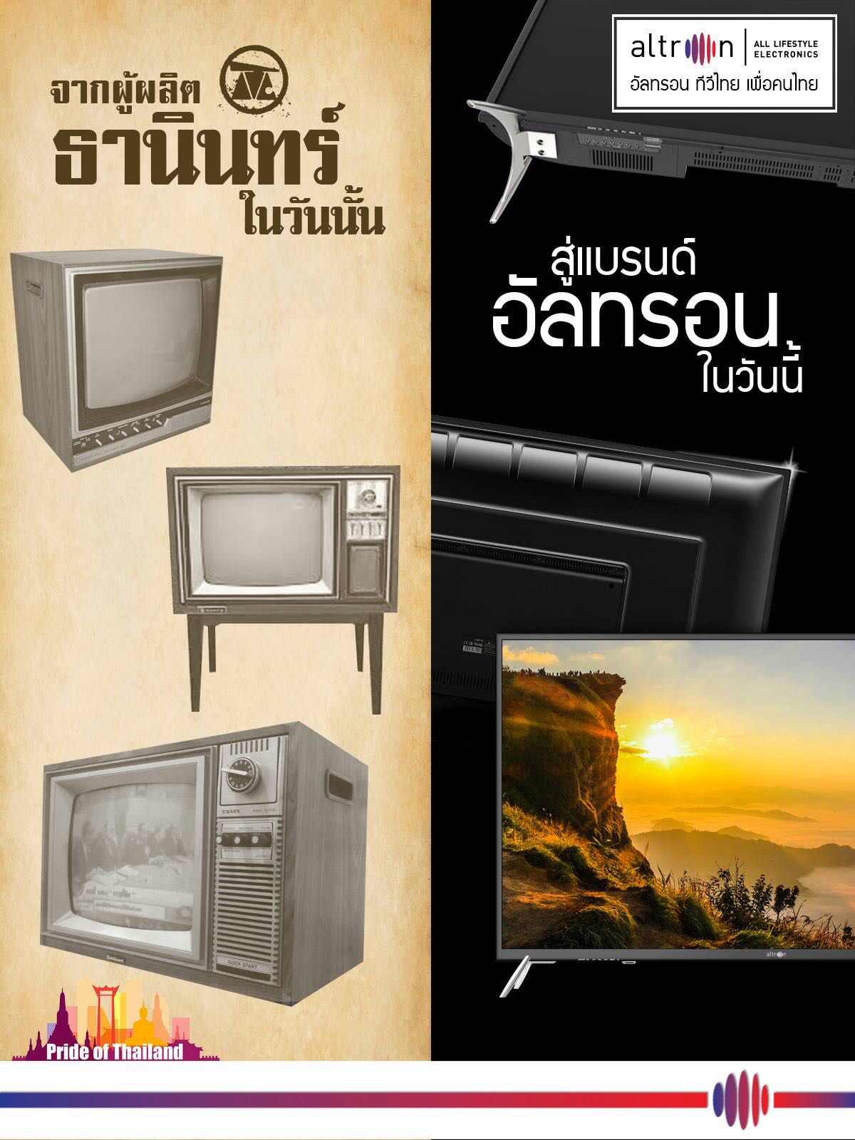 มีใครคิดเหมือนผมบ้างครับว่าทีวียี่ห้อ อัลทรอน เป็นของจีน พึ่งมารู้วันนี้เป็นของไทย ยี่ห้อ ธานินทร์ ในอดีต