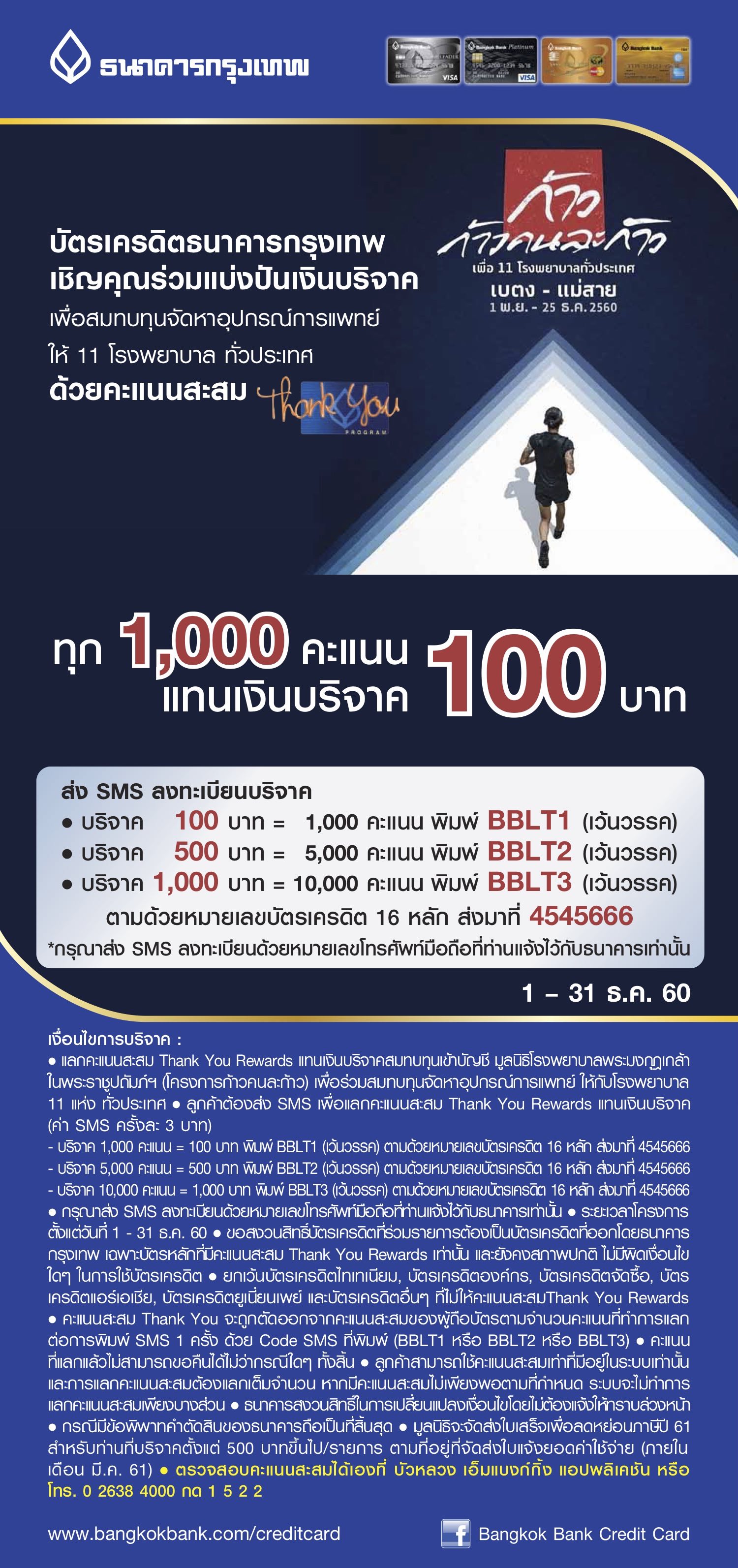ใช้ Point Credit BBL บริจาค ก้าวคนละก้าวไป รวมบริจาค 2,000 บาทครับ