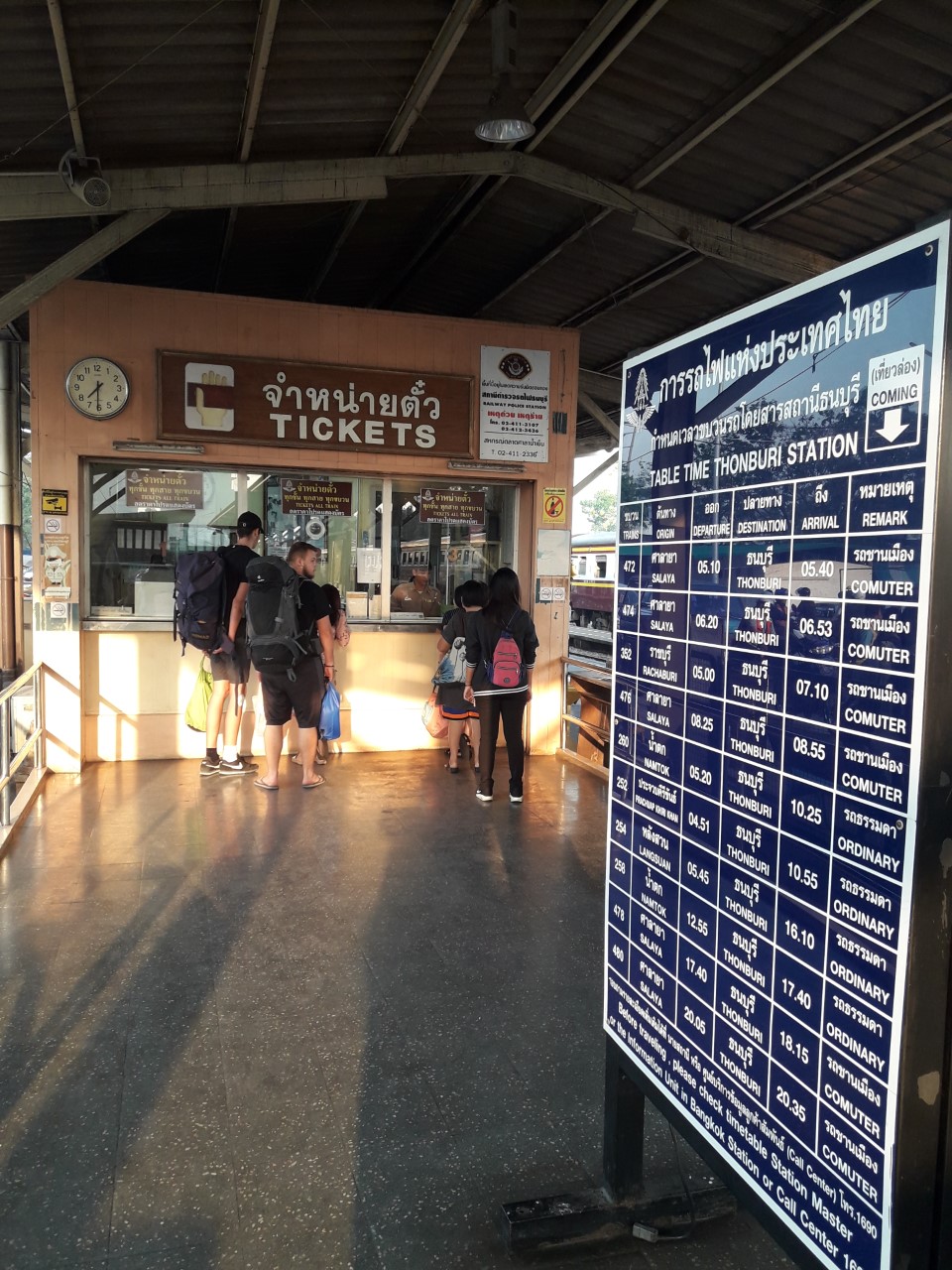 ถ้าจะขึ้นจากสถานีธนบุรีไปสถานีน้ำตกในวันเสาร์ ไปขบวนธรรมดาไม่ใช่รถนำเที่ยว ควรต้องซื้อตั๋วล่วงหน้าไหมครับ เพื่อนฝรั่งกลัวไม่มีตั๋ว ไปซื้อที่สถานนีไหนก็ได้ใช่ไหมครับ ขอบคุณครับ