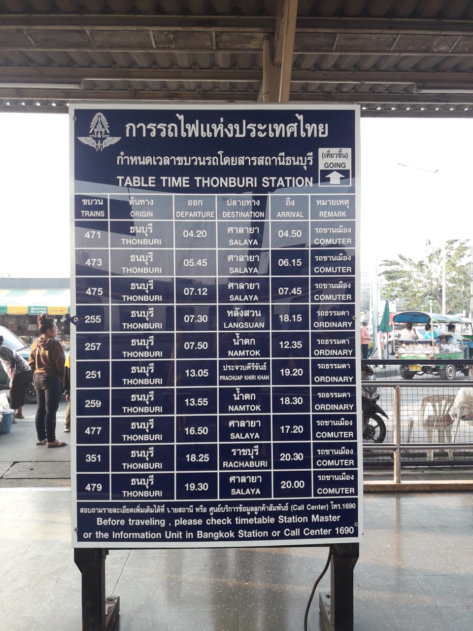 เวลาออกรถของแต่ละขบวนของสถานีรถไฟธนบุรีครับ