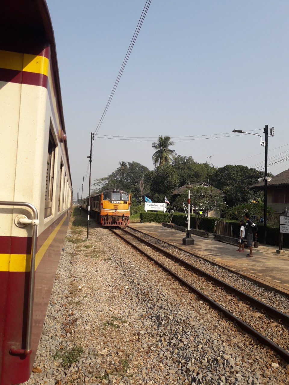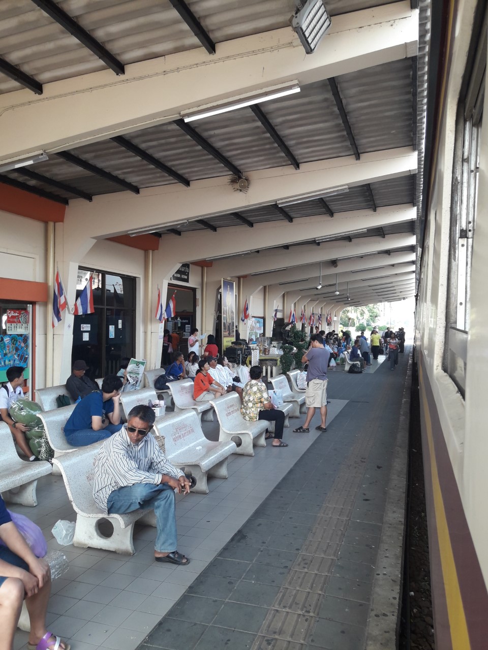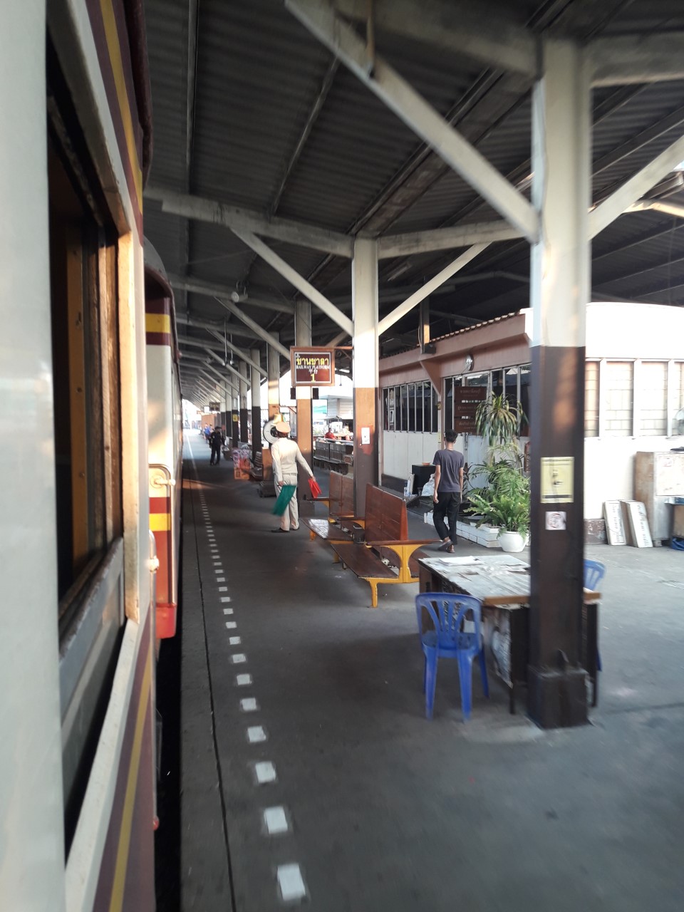 จ้าหน้าที่แจ้งว่ารถจะจอด 15 นาทีเพื่อเปลี่ยนหัวรถจักรจากหัวขบวนไปท้ายขบวนเพื่อนวิ่งกลับ กรุงเทพ เราจึงมีเวลา 15นาทีในการลงมาเดินเล่นยืดเส้นยืดสาย แถวๆสถานีครับ