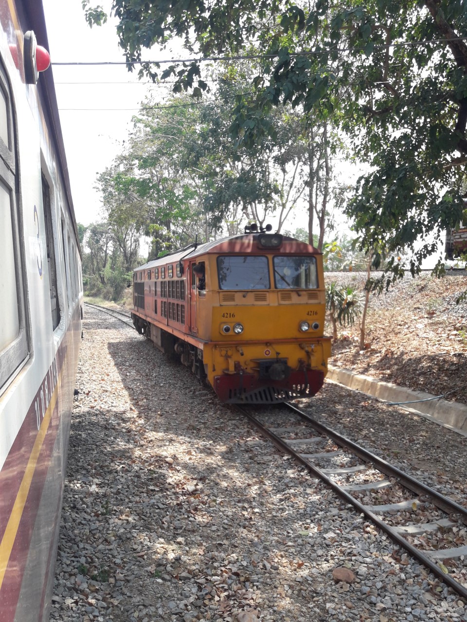 ที่สถานีนี้ระหว่างสับหลีกขบวนก็มีแม่ค้าข้าวกระทง ลงจากขบวนรางหลักขึ้นมาขายที่ขบวนผมนี่ครับ สบายเลยหิวๆพอดี