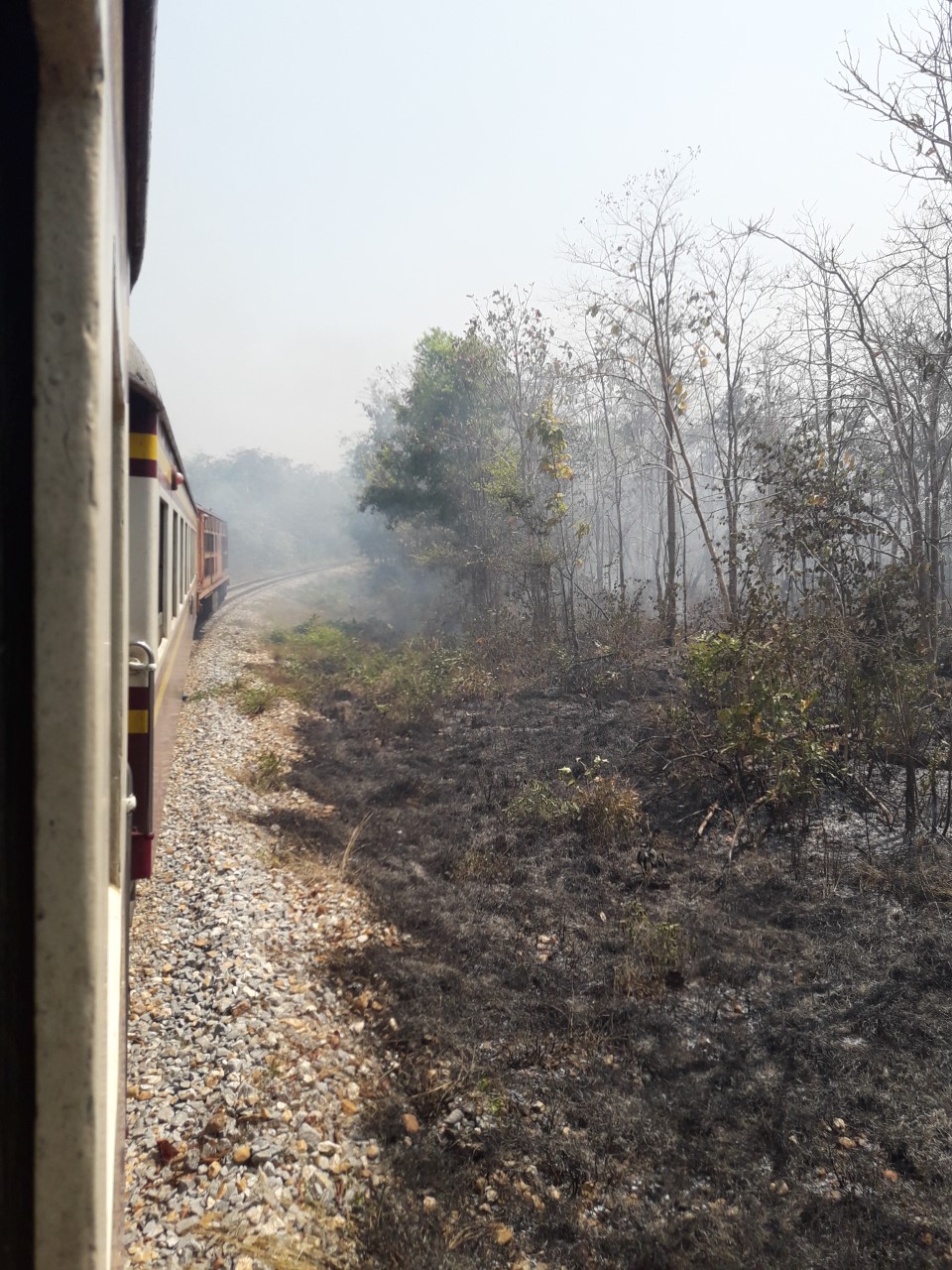 ขากลับข้างทางมีเผาใบไม้ต่างๆไฟแรงมากร้อนระอุเลยครับ ขี้เถ้ากระจาย ก็เป็นรถไฟรมควันกันไป