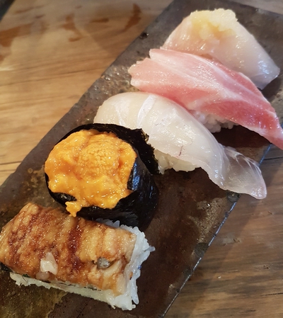 เช้าวันที่สองมาร้านถึง เอ็นโดะ ซูชิ ตอนแปดโมงเช้าโอ้โห้ดูคิวซิครับ