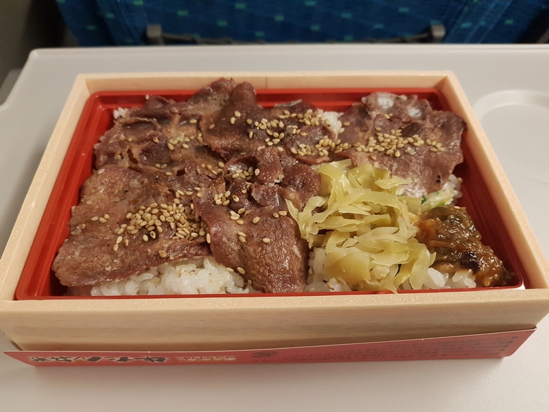 วันที่สามตื่นตั้งแต่ตีห้าไปฮิโรชิม่า เลยซื้อข้าวกล่องลิ้นวัวหม่ำบน Shinkansen
