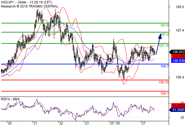 จุดที่ต้องการ: สถานะซื้อสูงกว่า 106.70 เป้าหมายต่อไปที่ 107.15 และ 107.40