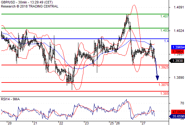 จุดที่ต้องการ: สถานะขายต่ำกว่า 1.4000 เป้าหมายต่อไปที่ 1.3925 และ 1.3875