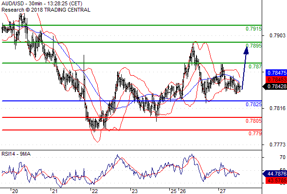 จุดที่ต้องการ: สถานะซื้อสูงกว่า 0.7825 เป้าหมายต่อไปที่ 0.7870 และ 0.7895