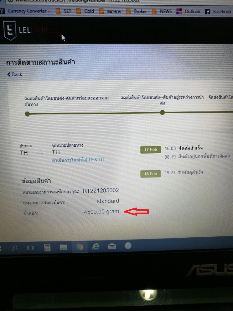 - ได้ส่งเมล แสดงน้ำหนักที่ทาง Lazada แจ้งมาทางเมล 4500 กรัม ให้ทาง Lazada ดูอีกครั้ง (ส่งให้ครั้งที่ 2)