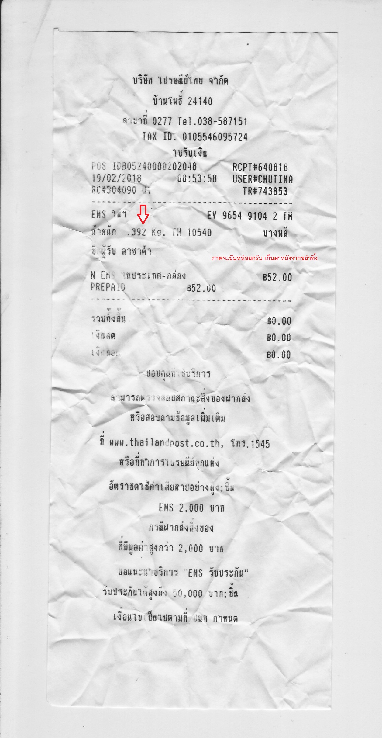 ส่วนตอนที่ผมส่งกลับคืน ในระบบEMS ก็มีน้ำหนักเช่นกัน