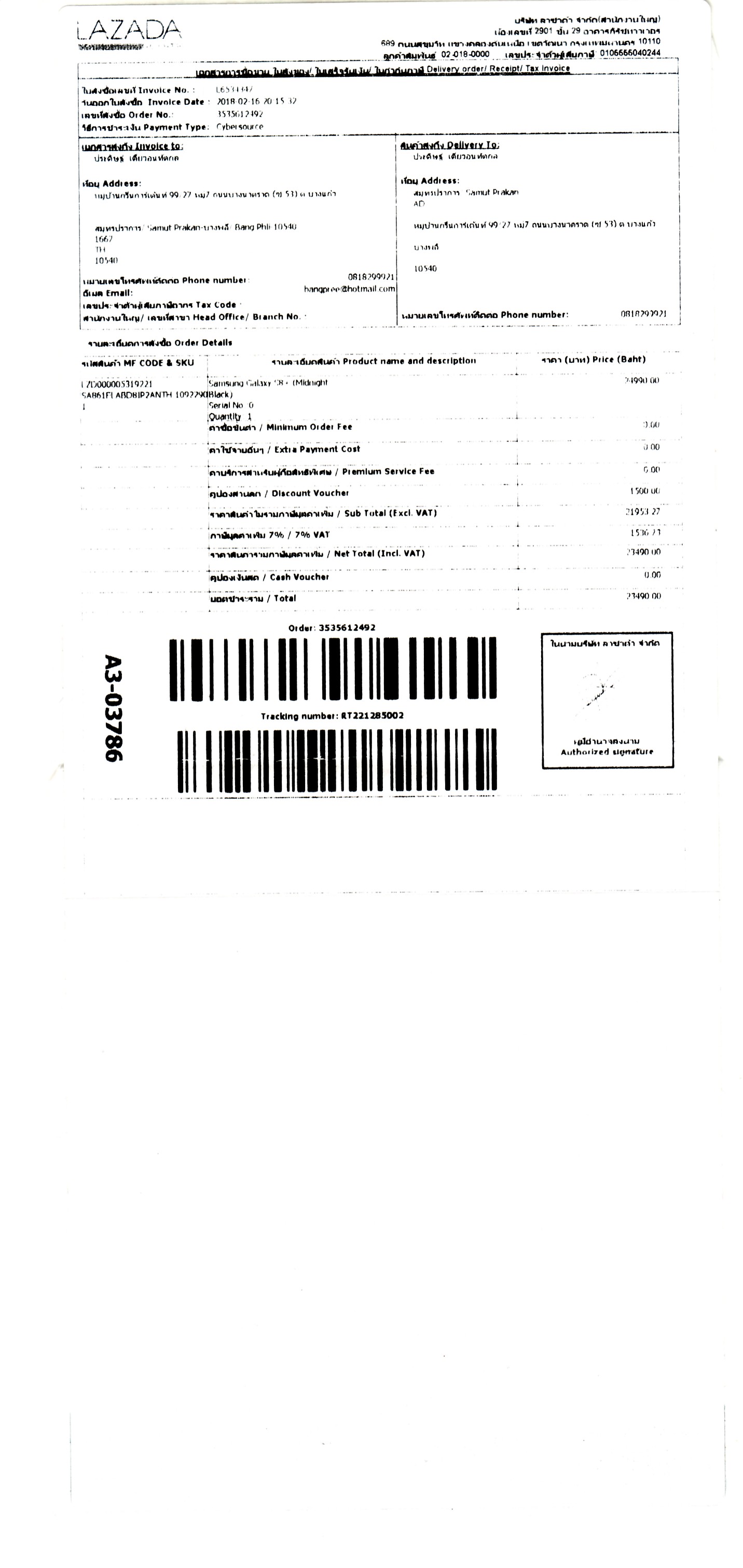 16/2/61 - ได้สั่งซื้อสินค้ากับทาง Lazada เป็นโทรศัพท์มือถือยี่ห้อ ซัมซุงS8+ (เลือกที่จำหน่ายโดย Lazada โดยคิดว่าปลอดภัย)