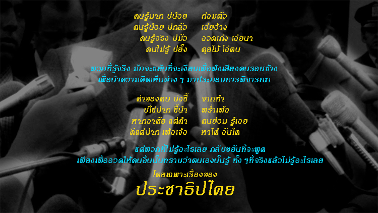 ไม่ว่าจากคนรอบข้างที่อยู่ร่วมสังคมกับเรา หรือว่าข่าวสารจากช่องทางสื่อสารต่างๆ มักจะมีคนจำพวก "ปากดี" ที่ไม่รู้ห่านไม่รู้เหวอันใด แต่ชอบเสนอหน้าออกมาให้ความเห็นแบบสุดโต่ง ให้งุนงงกันเล่นๆ ว่าประเทศนี้ มีระบอบการปกครองประชาธิปไตยจริงหรือ..?