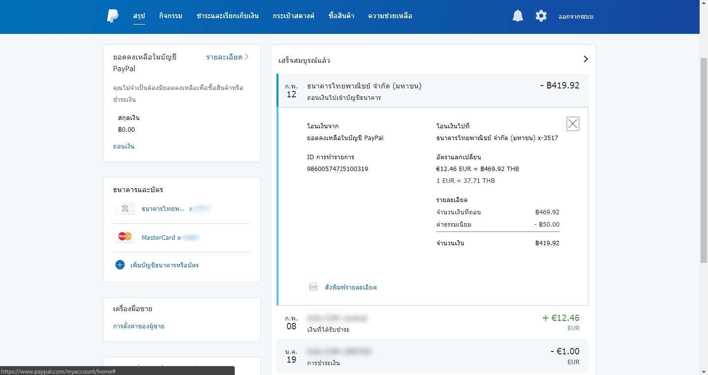 ปัญหาถอนเงินจากpaypal เข้าบัญชีไทยพาณิชย์