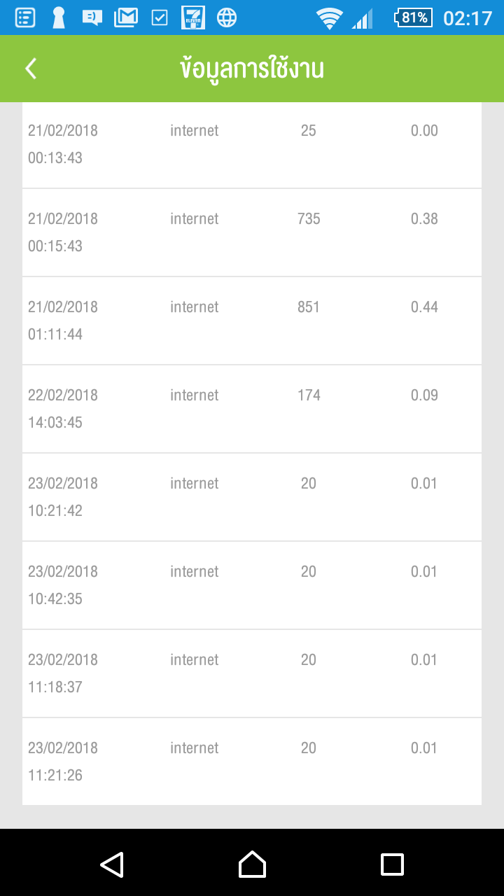 ผมเช็คดู การโทรไม่มีการใช้งานเลยครับ และ เงินก็ถูกดูดไป จนเหลือ 0 บาท ตรวจสอบอินเตอร์เน็ตก็มีการใช้งานเพียงแค่นี้ตามรูปครับ