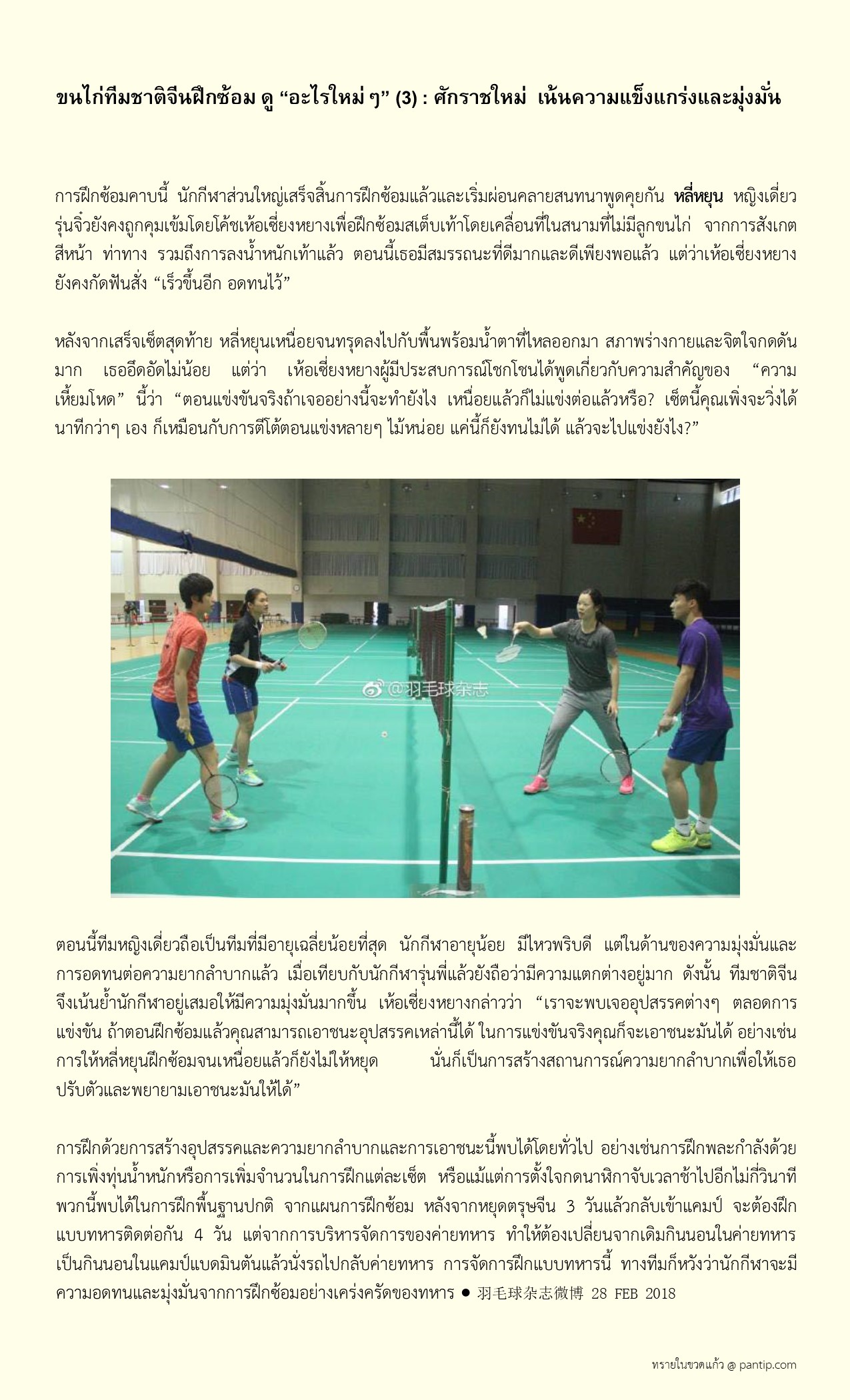 เครดิตข้อมูลจาก 羽毛球杂志微博 (วันที่ตามที่แสดงไว้ท้ายบทความ)