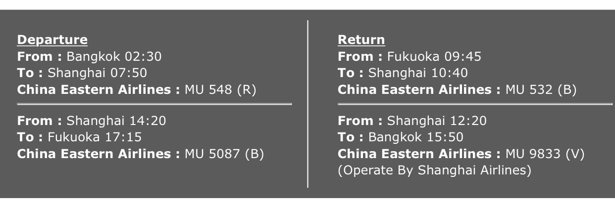 สอบถามเรื่องการบินไป Fukuoka ด้วย China Eastern Airlines