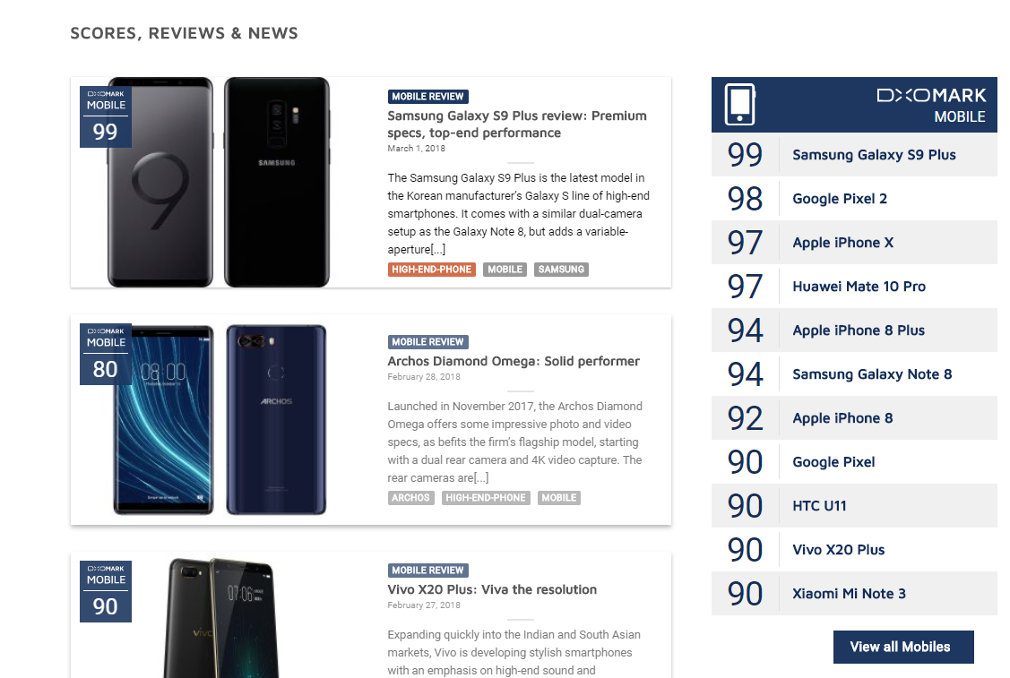 มาแล้วคะแนนกล้อง S9+ จาก Dxomark