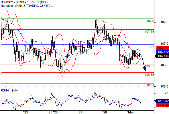 ความเห็นในเชิงเทคนิค: หากแนวต้านที่ 107.00 ยังไม่เลยขึ้นไป ความเสี่ยงที่จะทะลุต่ำกว่า 106.55 ยังคงสูงอยู่