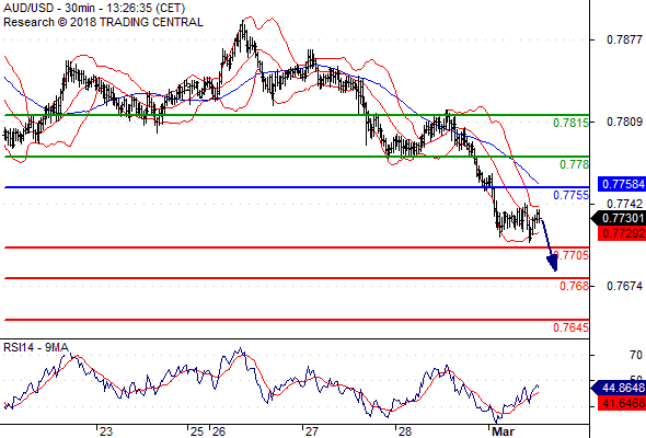 จุดที่ต้องการ: สถานะขายต่ำกว่า 0.7755 เป้าหมายต่อไปที่ 0.7705 และ 0.7680