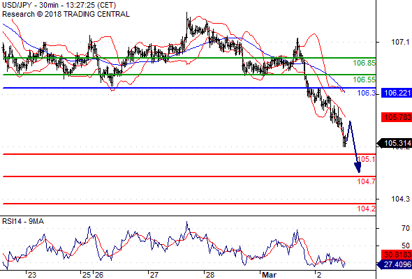 จุดที่ต้องการ: สถานะขายต่ำกว่า 106.30 เป้าหมายต่อไปที่ 105.10 และ 104.70
