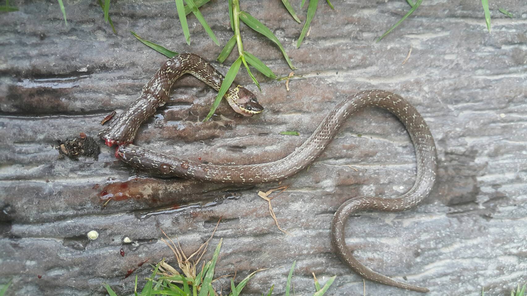 วันก่อนเราเจองูนอนอยู่โซนเก็บของของร้านอาหารที่ยายเราทำ เป็นโซนที่ติดกับป่า แต่โดยรวมแถวๆนั้นไม่ค่อยรกสักเท่าไหร่เพราะกวาดอยู่ตลอด แล้วทีนี่วันก่อนเจองูนอนคดอยู