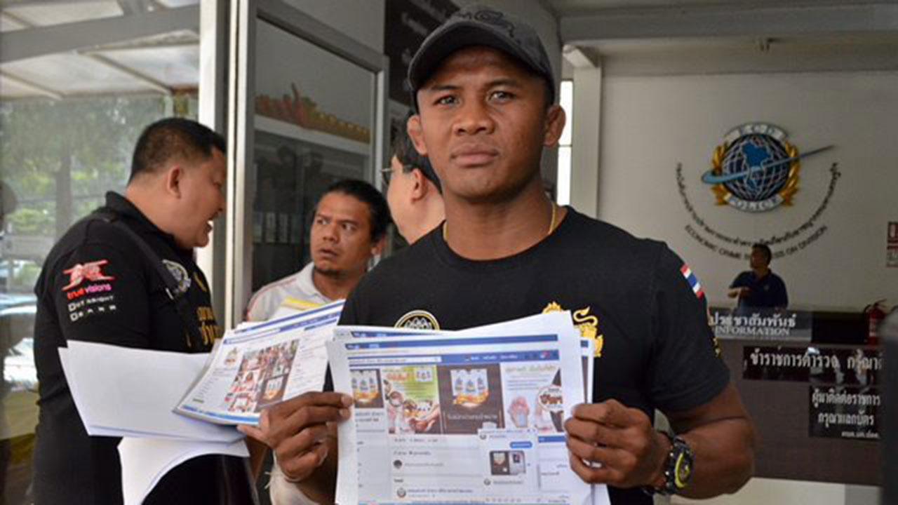 นักมวยชื่อดังเข้าแจ้งความตำรวจถูกเอาชื่อไปแอบอ้างขายสินค้ารายนี้ เปิดเผยขึ้นที่กองบังคับการปราบปรามการกระทำความผิดเกี่ยวกับอาชญากรรมทางเศรษฐกิจ (บก.ปอศ.) เมื่อเวลา 13.00 น. วันที่ 2 มี.ค. ส.ท.สมบัติ บัญชาเมฆ หรือ “บัวขาว บัญชาเมฆ” นักมวยชื่อดังพร้อมนายสันติวัสถ์ สังข์วรรณะ ทนายความส่วนตัว เดินทางเข้าแจ้งความร้องทุกข์พนักงานสอบสวน บก.ปอศ. ดำเนินคดีกับผู้ที่เอาชื่อ ตัวเองไปแอบอ้างโฆษณาสินค้า